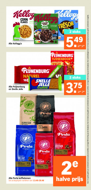 Deze tekst wordt automatisch gegenereerd, dus deze kan fouten bevatten.f L & fé FIN, fa & 229 Óf CORN © mn FLAKES Ue N, % rés À di ve ae” 2 stuks EN DI Le U wi 8 id Alle Kellogg’s Ri || RL seren FAT 2 stuks ELLE JELL Alle Peijnenburg en Snelle Jelle N Bi Pela es VOEREN ESPRESSO ET 4e ie | | Perla PL TES KUÉFIEBONEN | Alle Perla koffiebonen Voor 1#1 gratis geldt: per combinatle kan de prijs verschillen. Je krijgt 50% korting op de totaalprijs. Voor 2e halve prijs geldt: per combinatie kan de prijs verschillen. Jekrligt 25% korting op de totaalprijs Voor aanbiedingen met 2 of meer productvarlanten geldt: combineren mogelijk