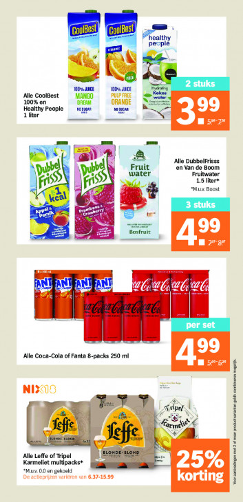 Deze tekst wordt automatisch gegenereerd, dus deze kan fouten bevatten.GB. healthy pevplé % és 100% JUICE 109% JUIGE ing 2 stuks Alle CoolBest MANGO PULP FREE Kokos water 100% en DREAM ORANBE immun Healthy People 99 1 liter NO SUOAR NO SUEAR CE Alle DubbelFrisss FE dk Fru en Van de Boom pu pe water Fruitwater 15 liter* pri fr N| “Mu. Boost 4 3 stuks re CT craf Ufo Ge) Æ nr 99 Bosfruit Em 7727 EN Bee AN NT per set Alle Coca-Cola of Fanta 8-packs 250 ml 99 m5 NI3U0 pe, x Alle Leffe of Tripel Karmeliet multipacks* 3 25% *M.uv. 0.0 en gekoeld De actieprijzen variören van 6.37-15.99 korting Voor aanbledingen met 2 of meer productvarlanten geldt: combineren mogelijk.