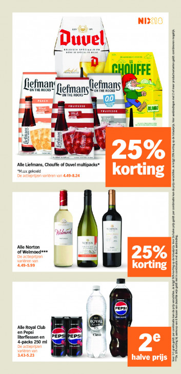 Deze tekst wordt automatisch gegenereerd, dus deze kan fouten bevatten.NI? böse) BeLaisen spe eıaaıa mul} L mene nr sptciauire arte SERIE CHOUFFE IA a FFE efman: fiefmans (iefman’ ON THE ROCKS = efmans > ON THE ROCI fi ON THE vans EX 00 TI E FRUITESSE EEE = 7 wi EA > É | kl a pen XL Alle Liefmans, Chouffe of Duvel multipacks* *M.uy. gekoeld De actieprijzen variëren van 4.49-8.24 Ole TT En IRTON Me ud | (ORTON Alle Norton 0 of Welmoed*** De actieprijzen CC variéren van 4.49-5.99 korting 0% korting op detotaalprijs Voor 2e halve prijs geldt: per combinatie kan de prijs verschillen. Je krijgt 25% korting op de totaalprijs. Voor aanbledingen met 2 of meer productvarlanten geldt: combineren mogelijk. jn geldt niet In combinatie met deze aanbledng. A ed Alle Royal Club en Pepsi literflessen en PEPS 4-packs 250 ml De actieprijzen variëren van 2° 3.43-5.23 halve prijs Voor 1+1 gratis geldt: per combinatie kan de prijs ver #**De 10% korting bij aankoop van 6 flessen van deze