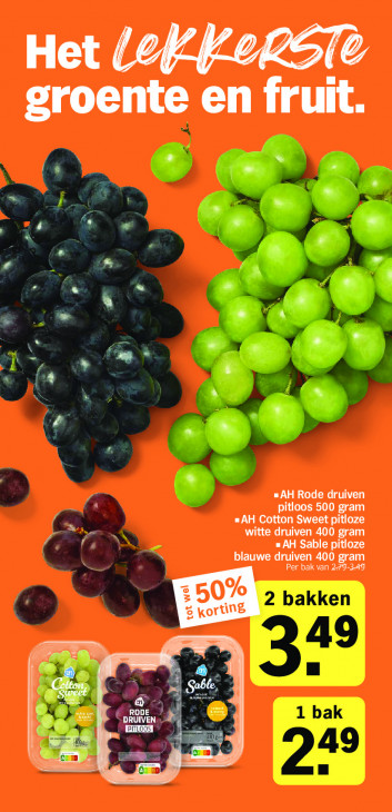 Deze tekst wordt automatisch gegenereerd, dus deze kan fouten bevatten.GT; N fe Het N LS A en fruit. | 4 à. ad N à =AH Rode druiven pitloos 500 gram =AH Cotton Sweet pitloze witte druiven 400 gram = AH Sable pitloze blauwe druiven 400 gram Per bak van 279-3249 50% h kortin 3 ES 1 Ne 77 a a & el DT RUIVEN RODE | @ Me C7 Ed — Oren