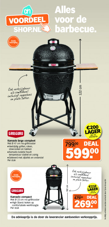 Deze tekst wordt automatisch gegenereerd, dus deze kan fouten bevatten.oto 1 = Gratis bezorging ; da) tn ri ’ baar Oot vert als com “4 ea 122 cm inclusief regenhoes en plate Setter. Ei €, Kamado large compleet Met @ 47 cm rvs-grillrooster = Veelzijdig: grillen, roken, DEAL slowcooken en bakken = Kamado-isolatie houdt 00 temperatuur stabiel en zuinig = Geleverd met zijtafels en onderstel 599 Per stuk es Ost verkri;. baar CS als confiden! Lt Cela sief. regenhoes en plate Setter. GRILGURU 102 cm _ Kamado compact Met @ 33 cm rvs-grillrooster ë | = High Stand: koken op à comfortabele werkhoogte 269% Per stuk De adviesprijs is de door de leverancier aanbevolen verkoopprijs. DeBBQ-artikelen worden verkocht door Fyron Group BV.