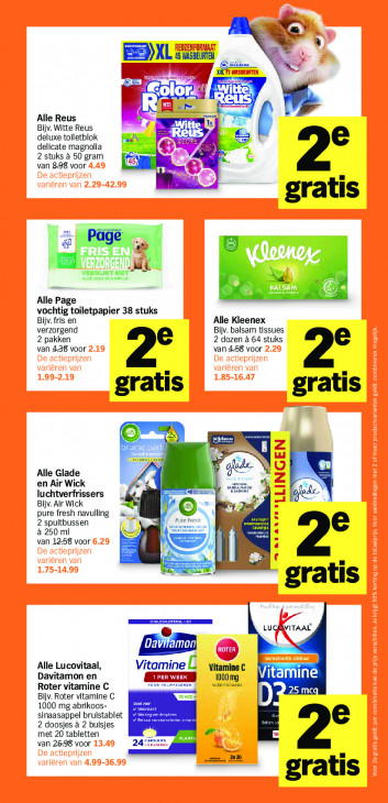 Deze tekst wordt automatisch gegenereerd, dus deze kan fouten bevatten.. EL: nr r il IT Pr ve Alle Reus Las Bijv. Witte Reus deluxe toiletblok van: R delicate magnolia 2 stuks à 50 gram 15) % van 898 voor | 2e gratis L FRISEN! ERZO (edit &. VERRIJKT MET AL VER MAMIE — Alle Page vochtig toiletpapier 38 stuks Bijv. fris en Alle Kleenex verzorgend Bijv. balsam tissues 2 pakken 2 dozen à 64 stuks van 4-38 voor van 4-58 voor 2° gratis gratis (2) ns 4 Alle Glade gede en Air Wick sus luchtverfrissers ls) f REN? (ae. mo Bijv. Air Wick ©: pure fresh navulling Fresh 2 spuitbussen I à 250 ml van 1258 voor Ne | 2° gratis wekrraar Alle Lucovitaal, Vitamine L Vitamine C Davitamon en WEERSTAND 1000 mg Vıtamıne Roter vitamine C 25 mcq Bijv. Roter vitamine C 70 MCG’ 1000 mg abrikoos- Pe and sinaasappel bruistablet 2 doosjes à 2 buisjes met 20 tabletten Para) van 26-98 voor DAS 2420 gratis