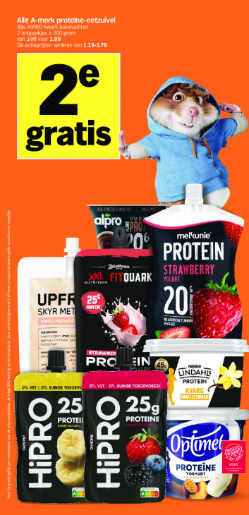 Deze tekst wordt automatisch gegenereerd, dus deze kan fouten bevatten.Alle A-merk proteïne-eetzuivel Bijv. HIPRO kwark bosvruchten van 398 voor 1.99 2 knijpzakjes à 200 gram De actieprijzen variëren van 1.19-3.79 .. Ir. à no qe f EN 77 = Dm) LI salt Y NÜTRITION [LITE YOGURT UPF 25° SU van he SKYR ME A] = Penn | Inaresiontan CR 4 er sel 3x MM Un) | Nestis verf wa F TP UNDAHE 0% VET | 0% SUIKER TOEGEVOEGD PROTEIN % KVARG 25 25 ROTEINE ROTEI| A | | x & Er = OTEINE 13) _ IN T: Voor 2e gratis geldt: per combinatie kan de prijs verschlllen. Je krijgt 50% korting op de totaalprijs. Voor aanbledingen met 2 of meer productvarlanten geldt: combineren mogelijk. ED