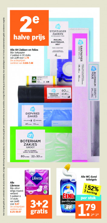 Deze tekst wordt automatisch gegenereerd, dus deze kan fouten bevatten.Ee 2° STOFZUIGER MICROVEZEL TYPE ZAKKEN halve prijs PHILIPS, ELECTROLUX, AEG* meetazenevercen Alle AH Zakken en folies DAS savants Bijv. bakpapier 2 pakken à 30 stuks Bos van 238 voor 1.78 De actieprijzen ualdvanva 7 variëren van 0.88-7.48 (onzooa ess zp 8e DR BEE ws m0 Enr Waning @ 6O un zeven RE 80.80: verdere enen. TREKSLUIT ét rOS"P6Z DIEPVRIES ZAKJES ME ras À | méme 4O ses 1,5ume BOTERHAM ZAKJES GROOT MET SLUITSTRIPS SMAAK- EN REUKVRIJ ss" « 8Osruxs 22x30 cu Alle WC-Eend Libresse En toiletgels Alle fi Libresse Bijv. ultra+ an ee wings maand- verband C2 5 pakken à EEND 14 stuks per stuk van 1445 ONTKALKER! voor 8.67 De actieprijzen Ey variëren van Eg 79 8.25-59.97 Voor 342 gratis geldt: per combinatie kan de prijs verschillen. Je krijgt 40% korting op detotaalprljs. Voor 2e halve prijs geldt: per combinatie kan de prijsverschillen. Je krijgt 25% korting op de totaalprijs. Voor aanbledingen met 2 of meer productvarlanten geldt: combineren mogelijk. gratis LES