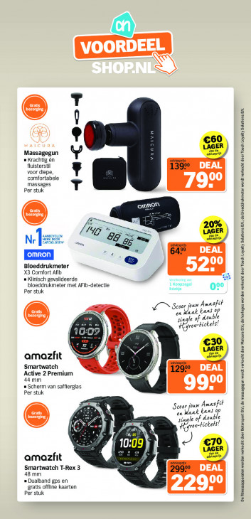Deze tekst wordt automatisch gegenereerd, dus deze kan fouten bevatten.VOORDEEL )) MALC Massagegun = Krachtig én fluisterstil DEAL voor diepe, comfortabele massages goo Per stuk | Bo 1% 5 à AANBEVOLEN nr Caza oge nzo € A5 an DEAL | omron | Bloeddrukmeter X3 Comfort Afib 290 Klinisch gevalideerde bloeddrukmeter met AFib-detectie 1 Koopzegel boekje oee Per stuk qu Amasfit LN Serre Lans 0) En ingle 4 double rox-tichets! N; de horloges worden verkocht door Touch Loyalty Solutions BV; de bloeddrukmeter wordt verkocht door Touch Loyalty Solutions BV. Ke Ki \ # Ÿ En | amazfıt Smartwatch DEAL Active 2 Premium 44 mm = Scherm van saffierglas 999 Per stuk ou Anazfit Soap at Lans pr il VA l e of doubl FT % rox-tichets! u Bl cen amazfit Smartwatch T-Rex 3 DEAL 48 mm = Dualband gps en gratis offline kaarten Per stuk 229. De fitnessapparaten worden verkocht door Betersport BN de massagegun wordt verkocht door Malcur