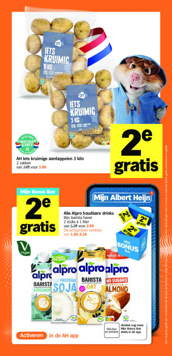 Deze tekst wordt automatisch gegenereerd, dus deze kan fouten bevatten.- 1m x AR} CUT Ze A J N & Zn | EL Er CL GE TNT ER en Oke) AH lets kruimige aardappelen 3 kilo 2° 2 zakl van 798 voor gratis ren 2e Alle Alpro houdbare drinks pe Bijv. barista have 2 stuks à 1 liter Satis van 538 voor à gratis Qi ON GTA LS : alpro alproalpro alpr SOJA BARISTA | an ST rh A as AL 9 G N Be mm Ben am = Ontdek nog meer activeer.| deals in de app. likhier | Mijn Bonus Box
