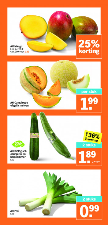 Deze tekst wordt automatisch gegenereerd, dus deze kan fouten bevatten.F AH Mango Los, per stuk van 1-99 voor £ en EL ge ze . À Ec © “er AH Cantaloupe of galia meloen 7" ' 3 = = 2 8 36 korting AH Biologisch courgette en komkommer Los AH Prei Los