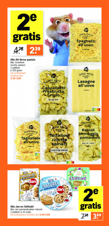 Deze tekst wordt automatisch gegenereerd, dus deze kan fouten bevatten.® = AV] = à & A ze X gemaak, sense gratis , : 3 s Daghsttt 5 Sr #8 Alle AH Verse pasta's Bijv. tortelloni ricotta spinaci 2 pakken à 250 gram _ en PASI4 Lasagne € all'uovo »Pi iu’ 4 soman Tal RAUWE Ham NF Bonte it SEMPÉS7 x heek. | oli ene | Tagliatelle XL om -alFurovo KAAS EN TOMAAT 7 s 2 urk “spl | 4 A a“ 2 RICOTTA a INAZIE w = j arme X 3 Sy, IE ep. Ce Fe el NAIURT SS un li „€ > SE 2° Alle Jan en OaYeah! Bijv. Jan pannenkoeken naturel gratis 2 pakken à 10 stuks