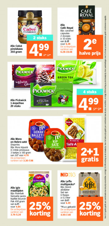 Deze tekst wordt automatisch gegenereerd, dus deze kan fouten bevatten.CAFÉ ROYAL Alle Café Royal Bijv. caramel ee capsules 2 doosjes 2 stuks à 10 stuks van 838 voor Alle Calvé pindakaas 350 gram "7 FE )) Bi HT: F Le Ar N x cr u RUE P Ned Alle Pickwick Al 5 1-kopsthee N 20 stuks Mora VO BALLET) PET Alle Mora 24 en Hebro saté KIP. I Diepvries SATE Ge Bijv. Mora kipsaté in milde pindasaus r. 3 bakjes à 160 gram van 247 voor IL 7.77 Me AA ta Alle Leffe multipacks* Bijv. blond Jef mer CN Alle Iglo abdijbier maaltijden FA Set van Bijv. Roerbak N ar 6 flesjes Sensatie pasta à 03 liter kipfilet Boursin van 865 Pak 450 gram voor van 6-45 voor *M.uv. gekoeld Voor 241 gratis geldt: per combinatie kan de prijsverschillen. Je krijgt 33.34% korting op de totaalprijs. Voor 2e halve prijs geldt: per combinatie kan de prijs verschillen. Je krijgt 25% korting op detotaalprljs. Voor aanbiedingen met 2 of meer productvarianten geldt: combineren mogelijk.