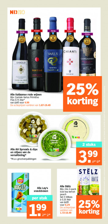 Deze tekst wordt automatisch gegenereerd, dus deze kan fouten bevatten.À F7 ET Stevig ES ET À 7 7 Jh 8+ 85 4 2 CHIANTI VAR 5 CANG Nr Ur BAROLO || 0 As) 7 FANT ANT CECCHI 2 zi aas sars | Alle Italiaanse rode wijnen Fles 0.75 liter* Bijv. Cantele Varius Primitivo van 6-65 voor „er a Ps à 1 Aïoli Ä (Al 1d Ue + Groen HT: = "ir Br 8 2stuks | Alle AH Spreads & dips en olijven van de versafdeling* *M.uv. grootverpakkingen STE wet do 8 MIX LACK ; 2 Le ı (=. Alle Stölz £ Ale BUGLES) Alle Lay's Bijv. mix 4-pack 4 snackboxen iced tea lemon 1 peach mi LE per stuk Set 4 blikjes à 0.25 liter LOTS van 839 voor