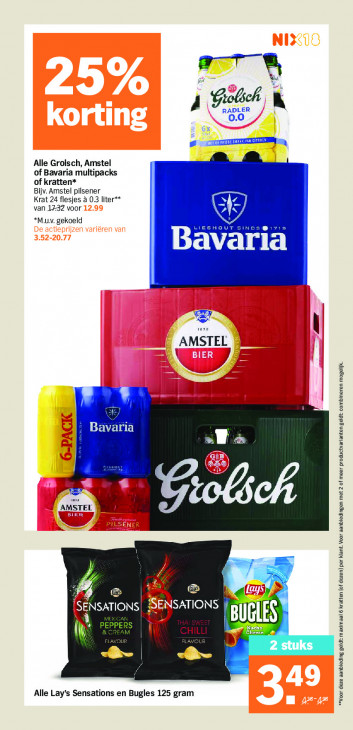 Deze tekst wordt automatisch gegenereerd, dus deze kan fouten bevatten.ee Ku tofsch RADLER À EEE Alle Grolsch, Amstel of Bavaria multipacks of kratten* Bijv. Amstel pilsener Krat 24 flesjes à 0.3 liter** van 1732 voor vi *M.uw. gekoeld A EEN CE B avarl 22 er vero \ È AMSTEL exe U A 7 lage DA sie to EA EL ; N Pay @ Eb À SATIOÏ ENSATIONS ul [= HILLI LAVOUR bf stuks ER Alle Lay's Sensations en Bugles 125 gram “voor deze aanbieding geldt:maxdmaal 6 kratten (of dozen) per Klant. Voor aanbledingen met 2 of meer productvarlanten geldt: combineren mogelijk.