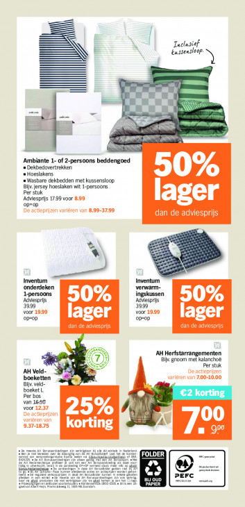 Deze tekst wordt automatisch gegenereerd, dus deze kan fouten bevatten.Inclusief kussensloop- Y a u | —— = u NIS [I NN aba ch amban vr Ta 5 SERRE Ambiante 1- of 2-persoons beddengoed = Dekbedovertrekken Hoeslakens 0% = Wasbare dekbedden met kussensloop Bijv. jersey hoeslaken wit 1-persoons Per stuk Adviesprijs 17.99 voor 8.99 op=op lager De actieprijzen variëren van 8.99-37.99 de adviesprijs GT è > ve == Inventum Inventum onderdeken verwarm- 1-persoons ingskussen Adviesprijs 50% Adviesprijs 0% voor 19.99 voor 19.99 op=op ager op=op ager dan de adviesprijs dan de advii US N AND AH Herfstarrangementen il 7) Bijv. gnoom met kalanchoë Sat GS Per stuk AH Veld- De actieprijzen boeketten ie variëren van 7.00-10.00 " Bijv. veld- boeket L Per bos €2 korting van 1650 ES voor 12.37 CC Gi De actieprijzen IT variëren van 00 9.37-18.75 korting CR = Ben Je net tovreden Feste A Bonuaanbicingen zin vrkjgbaar I] ale Ahnen Nederand 20 8 Mandler Laat hete Karen Henke van verpredorgankatie Spot AP osaan agen ap (sien ed met en gl At aber FOLDER Fc omis Fc lmecpaque pr H Bonusaanbieding als deze voor. Erw tage Viena en = dänbleine OP=0P vermeld sis maar andedirgen in deze nus er gekden nt D AA 6) ome ono 10 go aan Seh teid zoe qui te haoppriae "aa kunnen ehnikende, sce en schepen worden gehn nn dea Af Bon ‚der kunden In onkeie geualen es haden en sonteaantiedingen zij ook vera BIJ OUD PEFC mana Tonden zegen vooreen en de net verrlg En ar an ah head je aan a mare 00 fe Dirk een it RUE vka Enevan Al Hein Prosnebmeg 11 1306 MA Za a