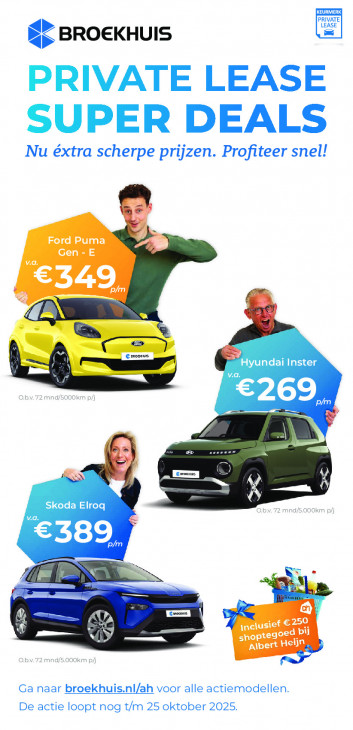 Deze tekst wordt automatisch gegenereerd, dus deze kan fouten bevatten.EEN JA, D a > BROEKHUIS Ä V E LEASE DEALS Nu extra scherpe prijzen. Profiteer snel! Ford Puma F2 Gen-E A 72 mnd/5000km | ® re ) „Ea 4} > | =) 2m d/5.00 89 (Zu) 8 ei = a &) (1 AL melken ru us « eee Albert Heijn, bv. 72 mnd/5.000km Ga naar broekhuis.nl/ah voor alle actiemodellen. De actie loopt nog t/m 25 oktober 2025.