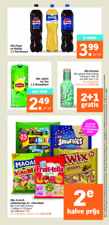Deze tekst wordt automatisch gegenereerd, dus deze kan fouten bevatten.en — Alle Pepsi ) N en Rivella 1.5 literflessen Ven. ef bord Alle Arizona Bijv. groene thee honing 3 flessen à 500 ml Alle Lipton van 447 voor Ice Tea 1.5 literpakken [ LOL RE LT #2) "Er a er Pape Te Le. Fi zu. RST U) h nl = @ © % x 12% MAO nn I I “ ERS - Si ES IR | © Alle A-merk uitdeelsnoep en -chocolade Bijv. Fruit-tella dummy 2 zakken à 132 gram van 5-98 voor Voor 1#1 gratis geldt: per combinatie kan de prijs verschillen. Je krijgt 50% korting op detotaalprijs Voor 2+1 gratis geldt: per combinatie kan de prijs verschillen. Jekrijgt 33.34% korting op de totaalprijs. Voor 2e halve prijs geldt per combinatie kan de prijs verschillen. Je krijgt 25% korting op de totaalprijs. Voor aanbiedingen met 2 of meer productvarianten geldt: combineren mogelijk.