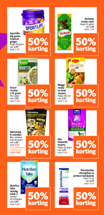 Deze tekst wordt automatisch gegenereerd, dus deze kan fouten bevatten.urn Verkade Dubai style Reep 93 gram van 399 ut voor SPORT Sportlife er d big gums tropical [113 ginger Potje 99 gram van 499 voor LU RISOTTO sie ® Maggi Knorr ready risotto to heat 175 gram sauzen Per zakje Pakje 250 ml van 299 van 239 voor voor El KLA KH Namdong K-noodles € „IE Bijv. chicken Alle Cup 84 gram Vitakraft van 199 voor Hearts Pakje 40 gram van 199 voor Parodontax strengthen & protect tandpasta Tube 75 ml | van 849 voor Nutrilon Tabs reparen EPRGSECH opvolg- melk 2 bd Doosje de 30 schepjes van 599 voor