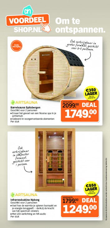 Deze tekst wordt automatisch gegenereerd, dus deze kan fouten bevatten.VOORDEEL | S, N Ook verkris. baar én Gratis ‚groter Br #2 = eschitt voor 2-6 per, eid Onen. En | & SHARTSAUNA Barrelsauna Spitsbergen Geschikt voor 2 personen = Ervaar het gevoel van een Noorse spa in je achtertuin 174990 = Geleverd in voorgemonteerde elementen Per stuk Ook Sr verl! baar in C pacter a ssd ormaat, ge schilt voor / persoon HARTSAUNA Infraroodcabine Nyborg DEAL Geschikt voor 2 personen = Voel hoe de warmte je spieren losmaakt en je energie teruggeeft — dankzij de kracht van full-spectrum stralers = Met LED-verlichting en hifi-audio 124990 Per stuk De sauna en de infraroodcabine worden verkocht door handelsonderneming Sellink BA.