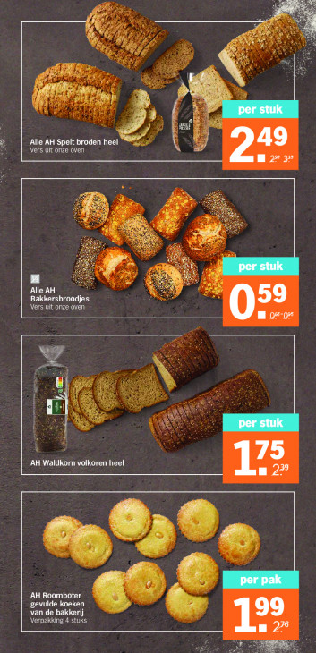 Deze tekst wordt automatisch gegenereerd, dus deze kan fouten bevatten.el ee 4 7 GE x Li 3 Alle AH Spelt broden heel sd 49 Vers uit onze oven nm BEN 5 ee u Alle AH £ Bakkersbroodjes 59 Vers uit onze oven td We 4 | 6 AH Waldkorn volkoren heel 2 Le: ie: Vs CURE gevulde koeken van de bakkerij Verpakking 4 stuks on,
