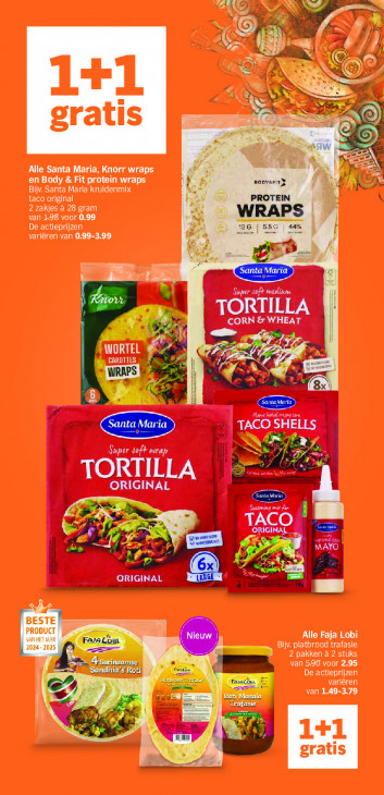Deze tekst wordt automatisch gegenereerd, dus deze kan fouten bevatten.Ed f A GE a RS 2 en € Alle Santa Maria, Knorr wraps F en Body & Fit protein wraps & Bijv. Santa Maria kruidenmix À 7 taco original 2 zakjes à 28 gram 5 EURE] De actieprijzen varieren van 0.99-3.99 | el te BP) d' En Super soft medium CORN & WHEAT SM ze. WORTEL | LER nr 43 Fe. | gen en EEN En AO SH DA Super voft wrap des ORIGINAL L LEE .- TACO à | 2 Vs en od ORIGINAL al À BESTE PRODUCT > VAN HET JAAR Alle Faja Lobi 2024-2025 Bijv. platbrood trafasie 2 pakken à 2 stuks van 5.90 voor 2.95 + SELLER] 4 GEN De actieprijzen ie == variëren Rot Masala van 1.49-3.79 | Trafasie | N