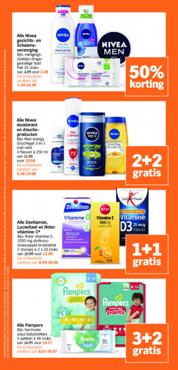 Deze tekst wordt automatisch gegenereerd, dus deze kan fouten bevatten.Ant 7 Alle Nivea NIVEA gezichts- en soer en lichaams- Express NIVEA verzorging Bijv. reinigings- „Hydration MEN doekjes droge/ gevoelige huid Pak 25 stuks van 499 voor semence une ares Alle Nivea NIVE _ deodorant en douche- producten | Bijv. Men energy douchegel 3-in-1 Rich Ce met mint © ehergy Shower 4 flessen à 250 ml van 21.96 voor = LANTA AL LUE D! Vitamine € Vitamine Alle Davitamon, 1000mg Lucovitaal en Roter 1. WEERSTAND 25 mcg D 1u) vitamine C* en HE Bijv. Roter vitamine C Dr | rent 1000 mg abrikoos- ed sinaasappel bruistablet 2 doosjes à 2 x 20 stuks 150 Æ: van 25-98 voor 20 a FX (ner. = | Pampers. 2. — protection Pm am 163 Af Î ow rige Alle Pampers Bijv. harmonie aqua babydoekjes 5 pakken à 48 stuks van 16-85 voor se B aqua