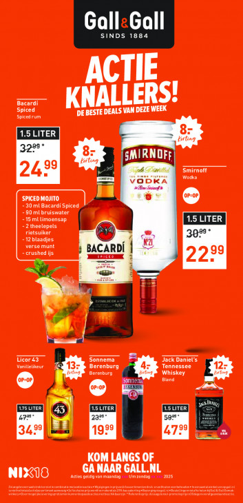 Deze tekst wordt automatisch gegenereerd, dus deze kan fouten bevatten.TIE lk Bacardi NALL eh Spiced DEZE WEEK En, NIS berlin 8- bi ny Smirnoff 242° Wodka vöbk À SPICED MOJITO - 30 ml Bacardi Spiced - 90 ml bruiswater -15 mllimoensap - 2 theelepels rietsuiker -12blaadjes Ki verse munt = crushed ijs El = _— Licor 43 Sonnema Jack Daniel's Vanillelikeur 13 Berenburg Tennessee bilan EEE) Whiskey Blend ns 4 N | ol = Ï 99 Î 99 dk KOM LANGS OF GA NAAR GALL.NL NUXSTO LOF ECU PES LE TE RE Te EE isnıethetaalolachelassorliment aarıverg«2e leshalve prijswordiverrekendals25% TS PONT ES winkels« Doormogelikeleveringsproblemen kunnenbepaaldeaciiesnietbeschikbaarzin.*Referenlioprij:.delaagstenie-promolieprin&0dagenvopralgaandaandeaciie,