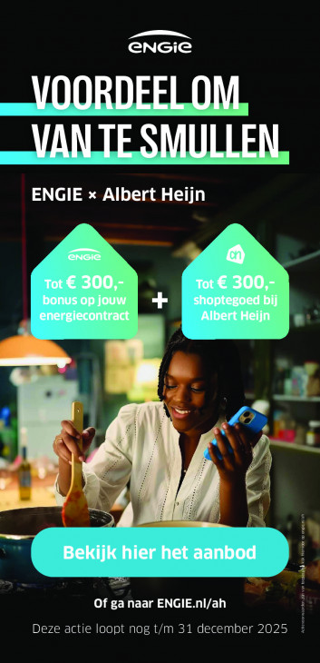 Deze tekst wordt automatisch gegenereerd, dus deze kan fouten bevatten.Sin SiS VOORDEEL OM ONDD ENGIE x Albert Heijn EeNGie & Tot € 300,- Tot € 300,- bonus op jouw + shoptegoed bij energiecontract Albert Heijn u > N a a ; i L | nn hier het a ei Of ga naar ENGIE.nl/ah Deze actie loopt nog t/m 31 december 2025