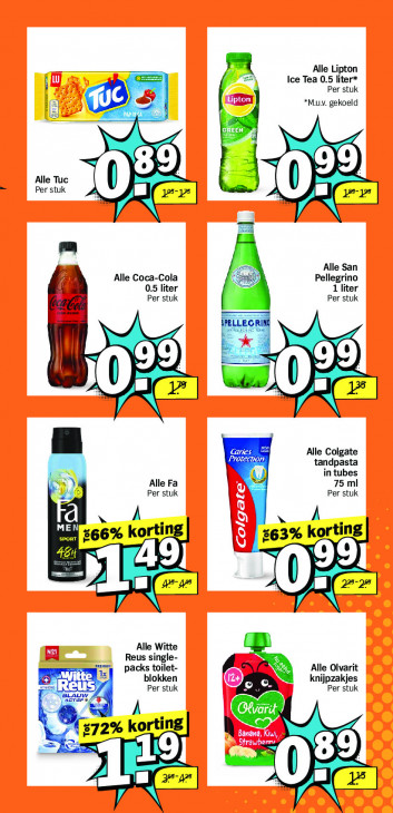 Deze tekst wordt automatisch gegenereerd, dus deze kan fouten bevatten.Alle Lipton Ice Tea 0.5 liter* Per stuk *M.uv. gekoeld 98 LU (5 89 99 Alle Tuc Per stuk I] I] = Alle San Alle Coca-Cola Pellegrino 0.5 liter 1 liter Per stuk Per stuk Lai TT ne 99 99 Il Garies, Alle Colgate Protection tandpasta in tubes Alle Fa 75 ml Per stuk Per stuk A LIST rtin; sporT 566% ko) 363% korting KE mn Ir] I] Alle Witte Bi SS nenn Reus single- A ichs packs toilet- Alle Olvarit blokken Per stuk CE knijpzakjes Per stuk BLAUW SAGEN Cliarit ‚72% korting 19 89 Ir] SI