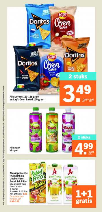 Deze tekst wordt automatisch gegenereerd, dus deze kan fouten bevatten.cn Hz nie Ad 4 4 4 \ nn wi rel PIE] L ns © p S u ee N pel Ed ANS OLD je rl Doritos Doritas Over asted > Ê (TETE 5 2 stuks 1 Alle Doritos 160-185 gram en Lay's Oven Baked 150 gram — à h b At Ad VA ture) is | MW TU Zero suchl ( Alle Raak f siropen % Eis El ss == 4 N. Alle Appelsientje hr FruitDrink en Db DubbelFrisss 55 gra Dring Fun @ vit Dring Boost 1-1.5 liter 8 Bijv. DubbelFrisss B ke DEA à zZ Boost ananas & mango 2 pakken à 1.5 liter Tr Al van 388 voor —ı — De Voor 141 gratis geldt: per combinatie kan de prijs verschillen. Je krijgt 50% korting op detotaalprijs Voor aanbiedingen met 2 ofmeer productvarianten geldt: combineren mogelijk.