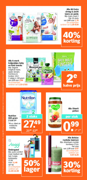 Deze tekst wordt automatisch gegenereerd, dus deze kan fouten bevatten.Alle AH Extra droog & zacht Gs, luiers en pants Extra ixtra droog, ch sehe Bijv. luiers maat 2 Pak 18 stuks UE Extra van 299 voor droogg, Fons Se I } = . AA ù zu eget) = = 2 Gore) Alle A-merk BABYMAIS knijpzakjes baby en kind snacks Bd Biologische EINGERS Bijv. Organix 4 Rozijntjeg = knijpfruit haver, appel, banaan, (OF framboos & Re (y bosbes 12m+ 2 zakjes à 100 gram er van 278 voor fe, Pt El Evie | | bl Alle Olvarit se potten Nutrilon 800 gram Gr EEEN 2t/m5* Ge Bobet *M.uv. dieet en medische voeding Alle Bolsius pi rustieke kaarsen Bijv. dinerkaars rustiek 92 bordeaux 27cm „loggi Per stuk zaal, van 1-39 voor Ondergoed Bijv. pure comfort maxi medium wit | Set 2 stuks Ì | Adviesprijs 2299 voor op=op