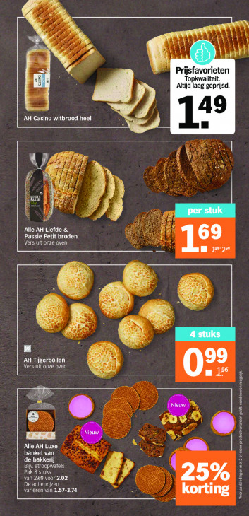 Deze tekst wordt automatisch gegenereerd, dus deze kan fouten bevatten.5 A Ta Ni Prijsfavorieten Topkwaliteit. 3 Altijd laag geprijsd. AH Casino witbrood heel 17° [7 LU { NZ # à 1 5 ie pe LEO EC CR: Passie Petit broden 69 Vers uit onze oven LES N 2 99 AH Tijgerbollen Vers uit onze oven | } ; LD % ZA IP Nn TT © OE Pe ar Alle AH Luxe > banket van de bakkerij Bijv. stroopwafels Pak 8 stuks van 269 voor 2.02 &.. (25% De actieprijzen variëren van 1.57-3.74 korting Voor aanbiedingen met 2.of meer productvat