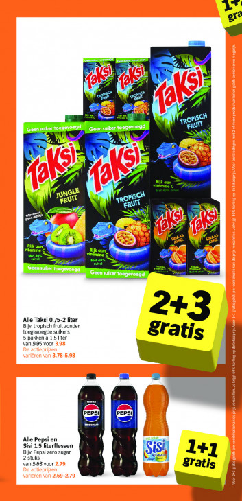 Deze tekst wordt automatisch gegenereerd, dus deze kan fouten bevatten.vu propres per sr mn Sr à CPE La Geen suiker. LE el a = à A RS LA US A zu ee 6 a Er Dee a N wi m a r SE id LOC ETES Ter] Alle Taksi 0.75-2 liter Bijv. tropisch fruit zonder toegevoegde suikers Srat, 5 pakken à 1.5 liter IS van 995 voor = rschillen. Je krijgt 60% korting.op detotaalprijs. = Alle Pepsi en SUN, 15 literflessen Bijv. Pepsi zero sugar 2 stuks van 558 voor N SA gr, a jd