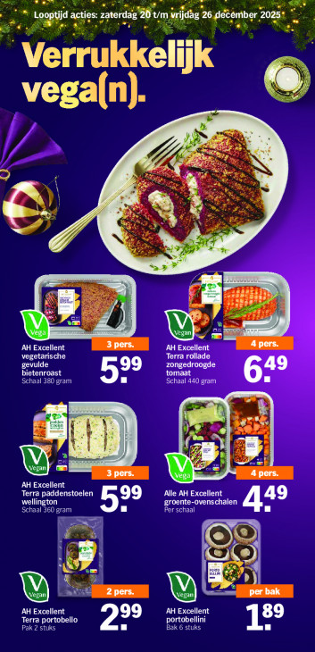 Deze tekst wordt automatisch gegenereerd, dus deze kan fouten bevatten.ee he Loo Bi t/m hi a Eu AU (5 ; ek En RL bij ns Fe ba 1 "Verrukkeli k ( vega(n) En 4 à KI “ a | \ + Le Ss Erf AI | AH Excellent 3 pers. AH Excellent 4 pers. vegetarische Terra rollade gevulde bietenroast 99 tomaat zongedroogde 49 Schaal 380 gram Schaal 440 gram n ! ien 1) 3 pers. ETC AH Excellent Terra paddenstoelen Alle AH Excellent N ra) 99 groente-ovenschalen Schaal 360 gram Per schaal 449 En I 7 nn | x D) I Ki a FA 2 u u N per bak AH Excellent AH Excellent 89 Terra portobello portobellini Pak 2 stuks Pas Bak 6 stuks