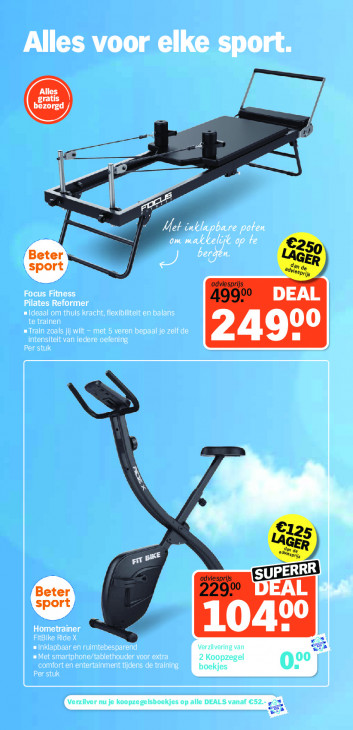 Deze tekst wordt automatisch gegenereerd, dus deze kan fouten bevatten.Alles voor elke sport. I CPI om mal £ OAN bergen. / Focus Fitness HERO CUT =Ideaal om thuis kracht, flexibiliteit en balans te trainen «Train zoals jij wilt - met 5 veren bepaal je zelf de Per stuk intensiteit van iedere oefening 3 2 Zi r N 5 1 PER RE Hometrainer FitBike Ride X 5 a a Inklapbaar en rulmtebesparend Verzilvering van we = Met smartphone/tablethouder voor extra 2 Koopzegel comfort en entertainment tijdens de training boekjes 0 Per stuk