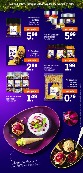Deze tekst wordt automatisch gegenereerd, dus deze kan fouten bevatten.‚oöptij erdag 20 fu 6 det: er 2025 ER Le D ñ LC Eh = AH Excellent eetbare bloemenmix Potje 7 gram TE EMEN per potje per potje u Alle AH Excellent 99 ki smaakparels 5% Potje 50 gram BLAD CURE GOUD % y bladgoud DR Pak 2 gram Mer B & id) per pak [2-4 10:5 Q 99 Alle AH Excellent 99 chutneys Les BORE av 3 Juke 3:8 BL AH Excellent zeen popcorn ie a karamel Zak 100 gram m ail r (à ES N: POPCORN Ji SD per potje RARAMEL per zak Alle AH Excellent 49 79 Cou Ou geldt: combineren mogelijk. Potje 70 gram et 2 of meer produc Voor aanbiedi a Lt u Et D Zoete Lerstmalers, AU en smaakvol.