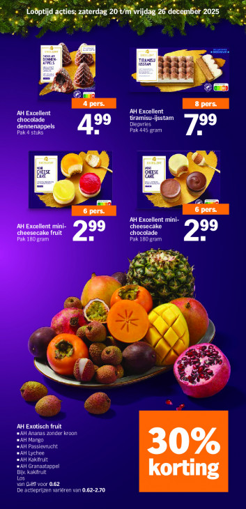 Deze tekst wordt automatisch gegenereerd, dus deze kan fouten bevatten.we he à Rn Seal terd: F4 ies; dn, ER 02 hi En Wir Ri DE Fr PS À F iS ® on pce vs APPELS DENNEN- TIRAMISU USSTAM er SG u # 3 3 be Mu AH Excellent AH Excellent chocolade tiramisu-ijsstam 99 Diepvries 99 dennenappels Pak 445 gram Pak 4 stuks nd AH Excellent mini CURE US cheesecake cheesecake fruit chocolade 99 72 Pak 180 gram Pak 180 gram Vs oe se PA fl za 7 mn os Ri FE en Te. AH Exotisch fruit = AH Ananas zonder kroon = AH Mango = AH Passievrucht = AH Lychee CELLES = AH Granaatappel Los Bijv. kakifruit van 0-89 voor 0.62 De actieprijzen variëren van 0.62-2.70