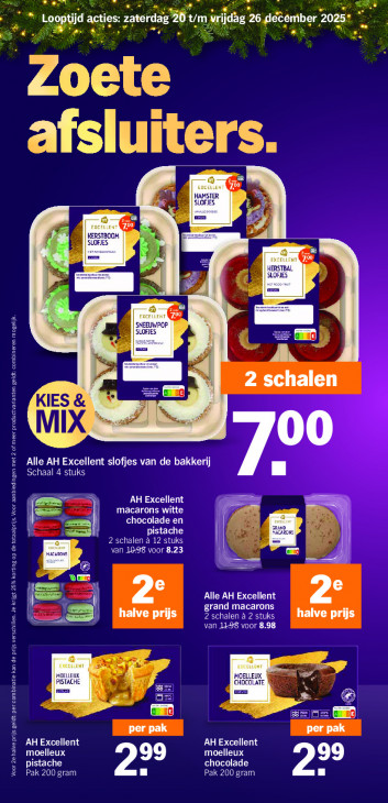 Deze tekst wordt automatisch gegenereerd, dus deze kan fouten bevatten.Le. ke 7 ijd acties: zaterda um ET CES 2025 zh Eh À PRO afsluiters LE HAMSTER SLOFIES KERSTBOOM zal 700 a KERSTBAL SLOFIES SNEEUWPOP GE € + 2 schalen ezel KIES & ” ze MIX ol Alle AH Excellent slofjes van de bakkerij Schaal 4 stuks eN AH Excellent > Ben Cf macarons witte Zn I chocolade en I An j pistache Ron 2 schalen à 12 stuks van 19-38 voor 8.23 _— [ed À LT oo} nl 2° LEO US Tg 5 | grand macarons llen. de kriigt 25% korting op de totaalprljs. Voor aanbiedingen met 2 ofmeer productvarianten geldt: combineren mogelk. u halve prijs 2 schalen à 2 stuks halve prijs van 11-98 voor 8.98 MOELLEUK PISTACHE B CHOCOLATE EUX Éd ® =: per pak per pak AH Excellent AH Excellent moelleux moelleux chocolade Voor 2e halve prijs geldt: per combinatie kan de pr pistache Pa Pas Pak 200 gram Pak 200 gram