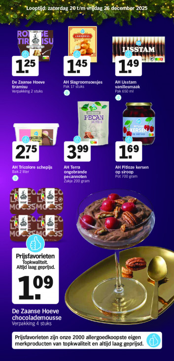 Deze tekst wordt automatisch gegenereerd, dus deze kan fouten bevatten.EN *Loo zaterdag 20 t RCE 1m Li Le Werte 54 Li AN R Fr D — AN LISSTAM| aol 10 45 49 De Zaanse Hoeve AH Slagroomsoesjes AH IJsstam tiramisu Pak 17 stuks vanillesmaak Pak 650 ml Verpakking 2 stuks I € PE! ke 99 AH Tricolore schepijs AH Terra AH Pitloze kersen Bak 2 liter ongebrande op siroop pecannoten Pot 700 gram Zakje 200 gram À ee ij IE: el rè MO&3 Lu le ar Pr í X ES 5 IN jd I Mc FL ce Prijsfavorieten pe Topkwaliteit. Altijd laag geprijsd. a 09 = u er De Zaanse Hoeve 24 chocolademousse Sg Verpakking 4 stuks Prijsfavorieten zijn onze 20/ 0 a go oopste eigen merkproducten va pkwaliteit en al laag gep