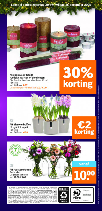 Deze tekst wordt automatisch gegenereerd, dus deze kan fouten bevatten.L AN Ei e OU da ctie: zaterdag 2 ri " a dag 3e CEA ae u, = = Ee Alle Bolsius of Gouda rustieke kaarsen of theelichten Bijv. Bolsius dinerkaars bordeaux 27 cm Per stuk van 1-39 voor u u 2 % 1 Br % 4 x 2 AE. ET AH Blauwe druifjes of Hyacint in pot I Per stuk van 6-80 voor en EE N Pi; li 9 zn O8 ß à) Ÿ Ge NS re. Sen sf \4 ge 25 ar PR vanaf AH Feestboeketten 4 N A Per boeket De prijzen variëren a van 10.00-25.00 = Ben je net tovreden = De meeste AH Bonusaanbidingen zin verkrigbaar hi ale AH-minkek in Nederland I an d8 All Bonustoldeß Laat het de Kanten. serie van versprekorganatie Spotta 8134235. nDe AH Boninaanblecingen zjn aleen gel, met een Ah Bonuskaart. « et FOLDER Fc omis famechèque pralieer I AH Bonusaanbieding als deze voor LA tag le uivernoeht, tenzij in de sanbieding OP=OP vermeld sjaat; meer Into op aanedingen in deze AH nus er gekden nt D AA 6) ono seeden 10.80 = AH Schlohol Plaza kunnen afwijkende acties en acliepripen worden gehan: lere Verkooppriae in eze A user kunnen In enkele gevalen ws afaiken In een wi ssanbiedingen zijn ook Verkrig 5 BIJ OUD PEFC mana Prism gigen on stlouten worbehot baar va alat producten di niet verkigbaar zin va aal herken je aan « Kntenservce: 000-003.» Dit een de anal N: pong ve van Albert Heijn Provincialeweg. 06 Ma zaandam,