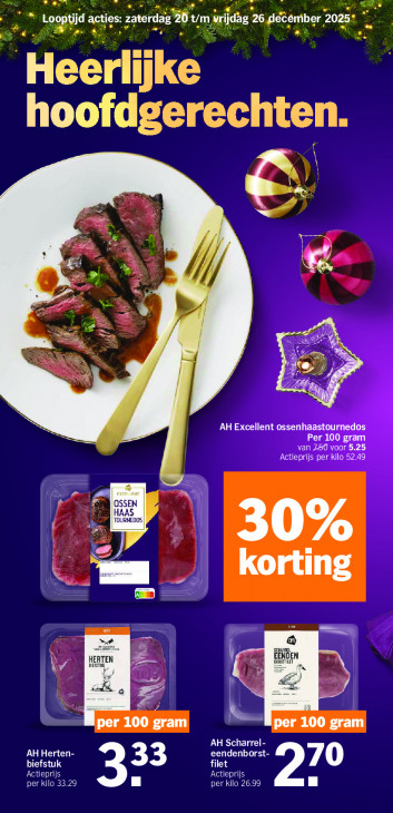 Deze tekst wordt automatisch gegenereerd, dus deze kan fouten bevatten.La. de: Es jd: * Loo; d ac zatel Lau ag Cr CETTE 2025. B rs ñ = à He er lijke hoofdgerechten. \ =. 7 \ el 4 a ei) > N LY 29 MR EP AH Excellent ossenhaastournedos NEU AN eel) Per 100 gram LC TEL OSSEN OURNEDOS DE korting u. wir nn > ga Ee HERTEN EENDI Wv UE, En ST B Se a à per 100 gram à per 100 gram AH Scharrel- CCE eendenborst- biefstuk 33 ul: Laien Leid per kilo 33.29 per kilo 26.99 27°