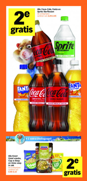 Deze tekst wordt automatisch gegenereerd, dus deze kan fouten bevatten.Alle Coca-Cola, Fanta en Sprite literflessen 2° » gratis bé BEAT SPecy FC x „a FE Eine \ I NIA FANT: af 7 kr 5 WANTA FAN MEALS WAMTA Fi ZERO SUGAR me Lame Ik Ik Pi ma en + 1 extra Le unox aad Alle Knorr pre B Cup-a-Soup Good snacks, en Unox soep in zak rs, $ ge, NE le 2° gratis